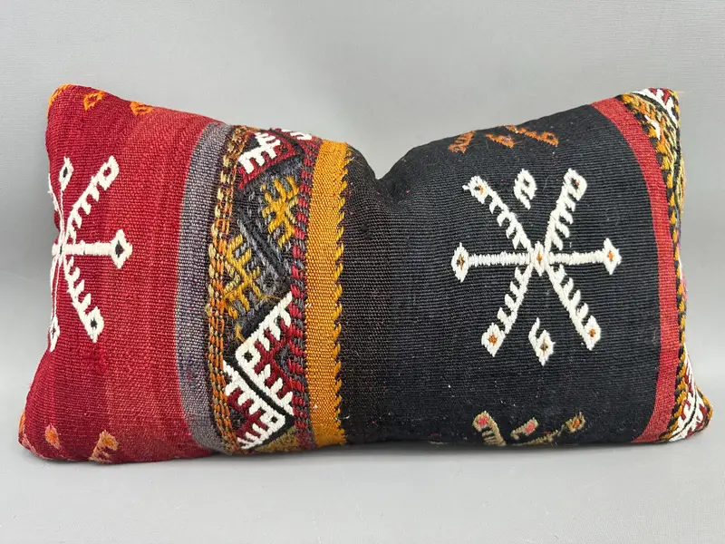 Red Geometric Kilim Throw Pillow, Vintage Kilim Cushion