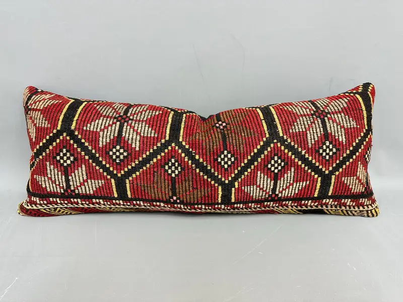Handwoven Southwestern Kilim Throw Pillow, Red & Beige Vintage Pillow