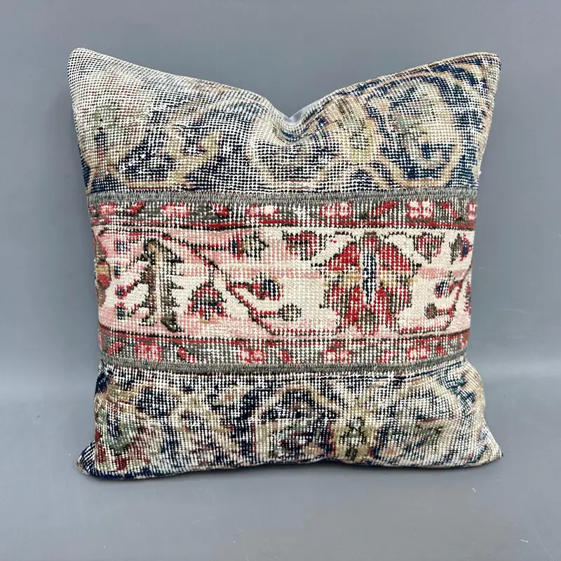 Handwoven Blue & Bronze Kilim Throw Pillow, Vintage Patchwork Cushion