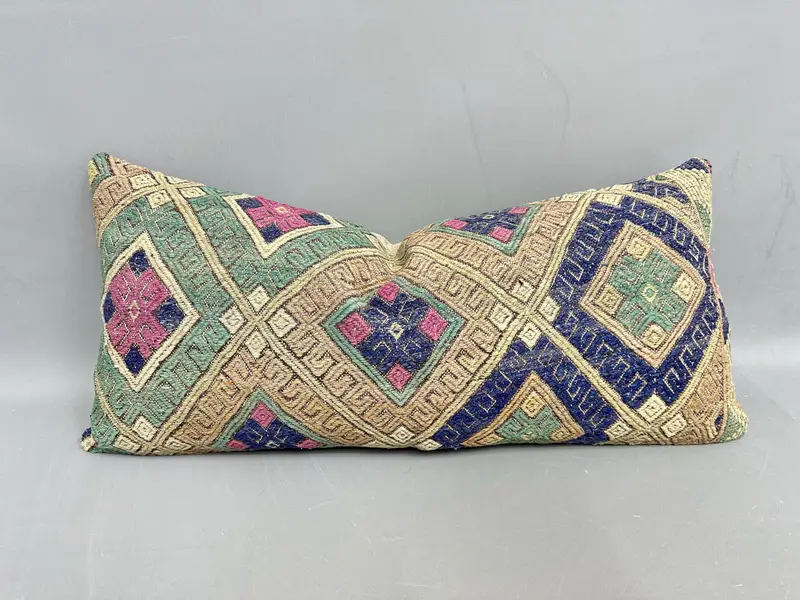 Handwoven Southwestern Kilim Throw Pillow, Vintage Embroidered Cushion