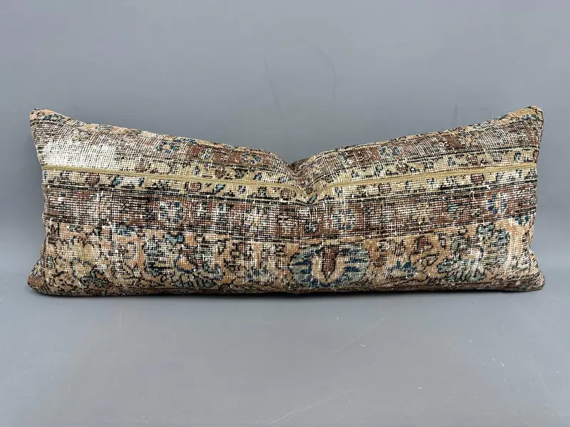 Beige & Brown Embroidered Patchwork Throw Pillow, Vintage Kilim Cushion