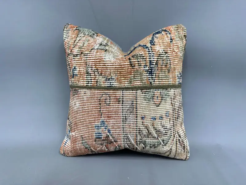 Orange & Bronze Patchwork Throw Pillow, Vintage Embroidered Cushion