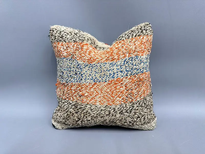 Red & Brown Striped Throw Pillow, Vintage Embroidered Cushion