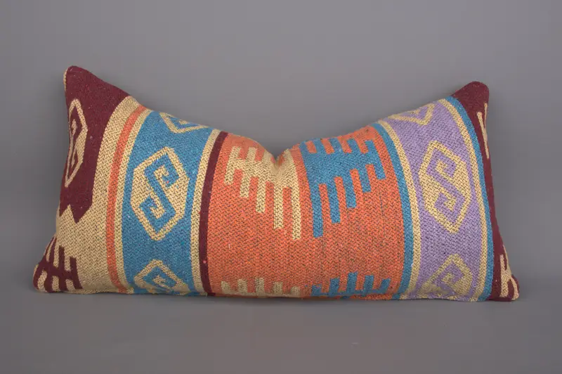 Orange & Red Embroidered Throw Pillow, Vintage Geometric Pillow