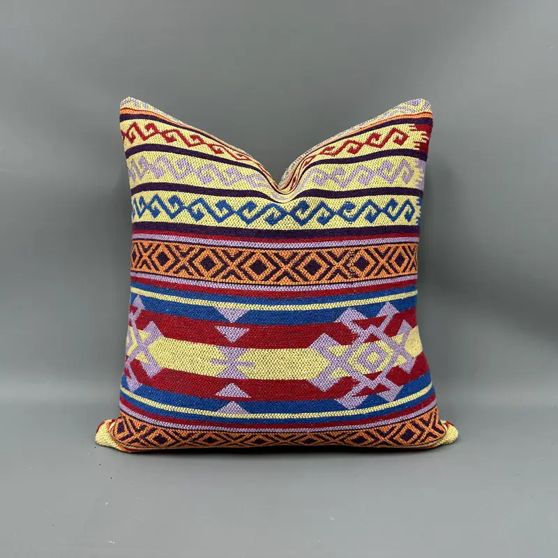 Geometric Beige & Purple Throw Pillow, Vintage Kilim Pillow