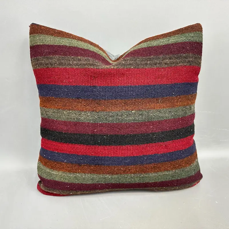 Red & Bronze Striped Pillow, 22x22 Inch Vintage Throw Pillow