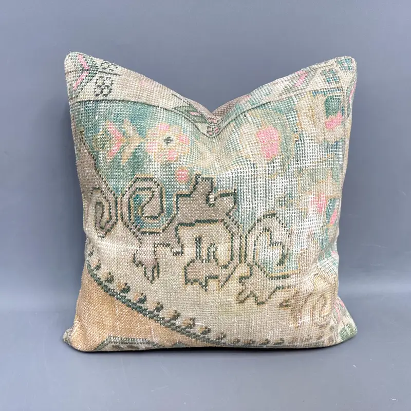 Beige & Orange Southwestern Throw Pillow, Vintage Embroidered Cushion