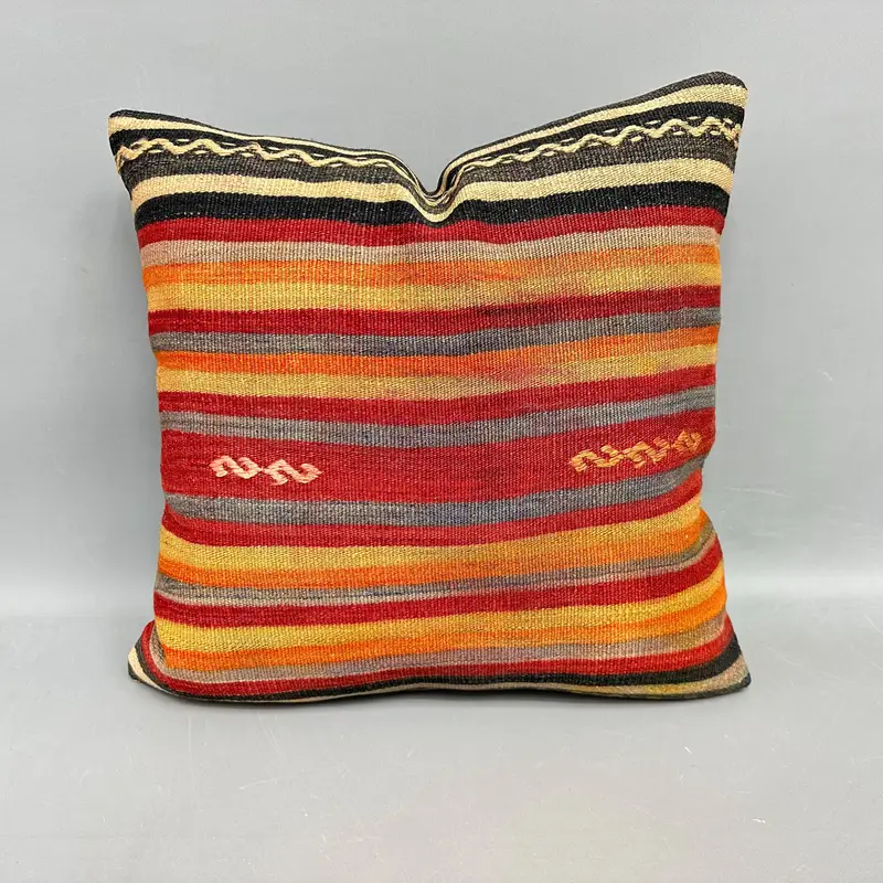 Orange & Red Striped Kilim Throw Pillow, Ethnic Boho Pillow