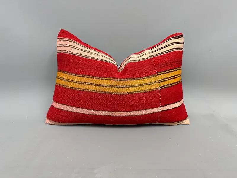 Red & Orange Striped Throw Pillow, Vintage Embroidered Cushion