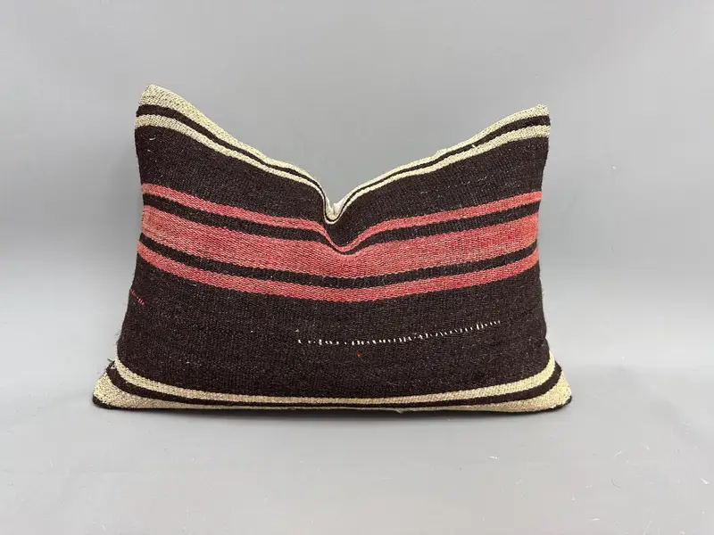 Brown & Red Striped Kilim Throw Pillow, Handmade Vintage Cushion