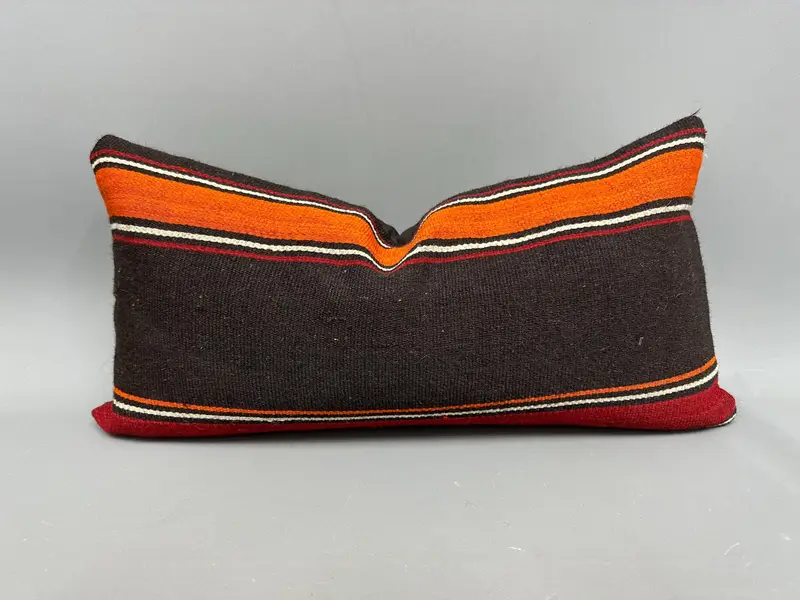 Handwoven Striped Throw Pillow, Vintage Kilim Cushion