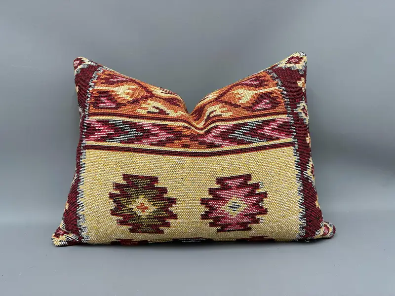 Red Linen Throw Pillow with Vintage Kilim Design, 20x28 Inch Decorative Pillow