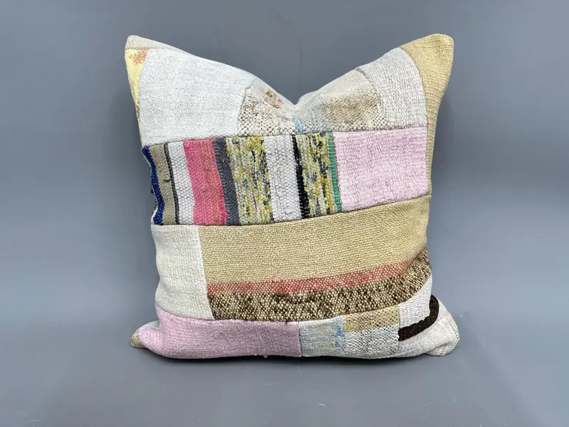 Handwoven Kilim Throw Pillow, Vintage Bohemian Cushion
