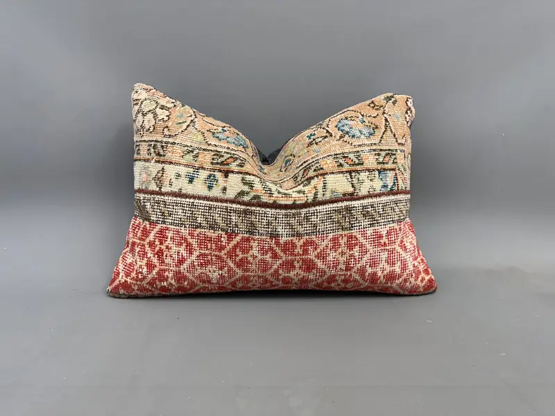 Beige & Red Floral Kilim Throw Pillow, Vintage Embroidered Cushion