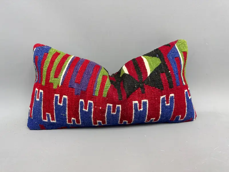 Red Geometric Throw Pillow, Vintage Kilim Cushion with Zipper Closure