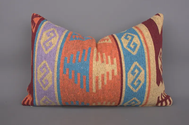 Handwoven Kilim Throw Pillow, Vintage Geometric Cushion with Zipper