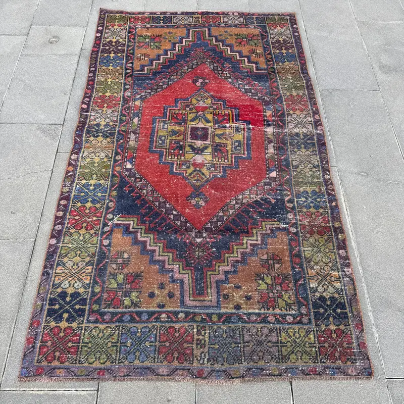Blue Southwestern Rug, 3,7x6,3 ft with Red Accents