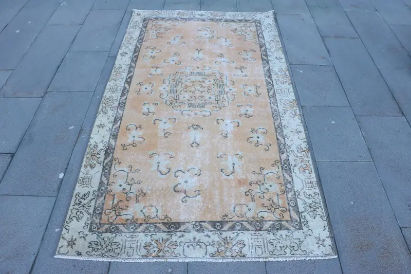 Elegant Orange Persian Rug, 3.7x6.6 ft with Brown Accents