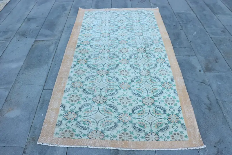 Elegant Green & Beige Rug, 3,8x6,7 ft Bordered Design