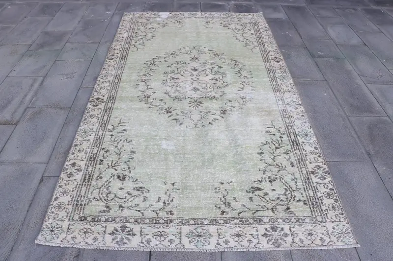 Elegant Green Rug, 4,7x8,4 ft Bordered Design