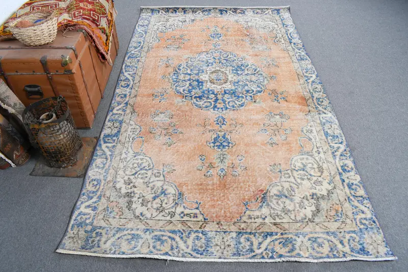 Vibrant Orange Rug, 4,7x8,2 ft with Blue Accents
