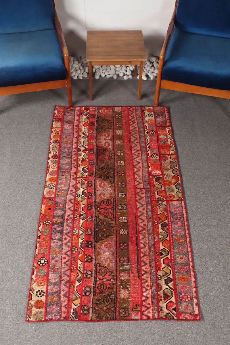 Turkish 3x5.7 ft Rug, Accent Vintage Rug, Pink Rainbow Geometric Rug