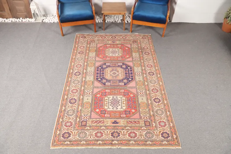 Turkish Rug, 4.7x7.3 ft Accent Rug, Rainbow Geometric with floral elements Vintage Rug