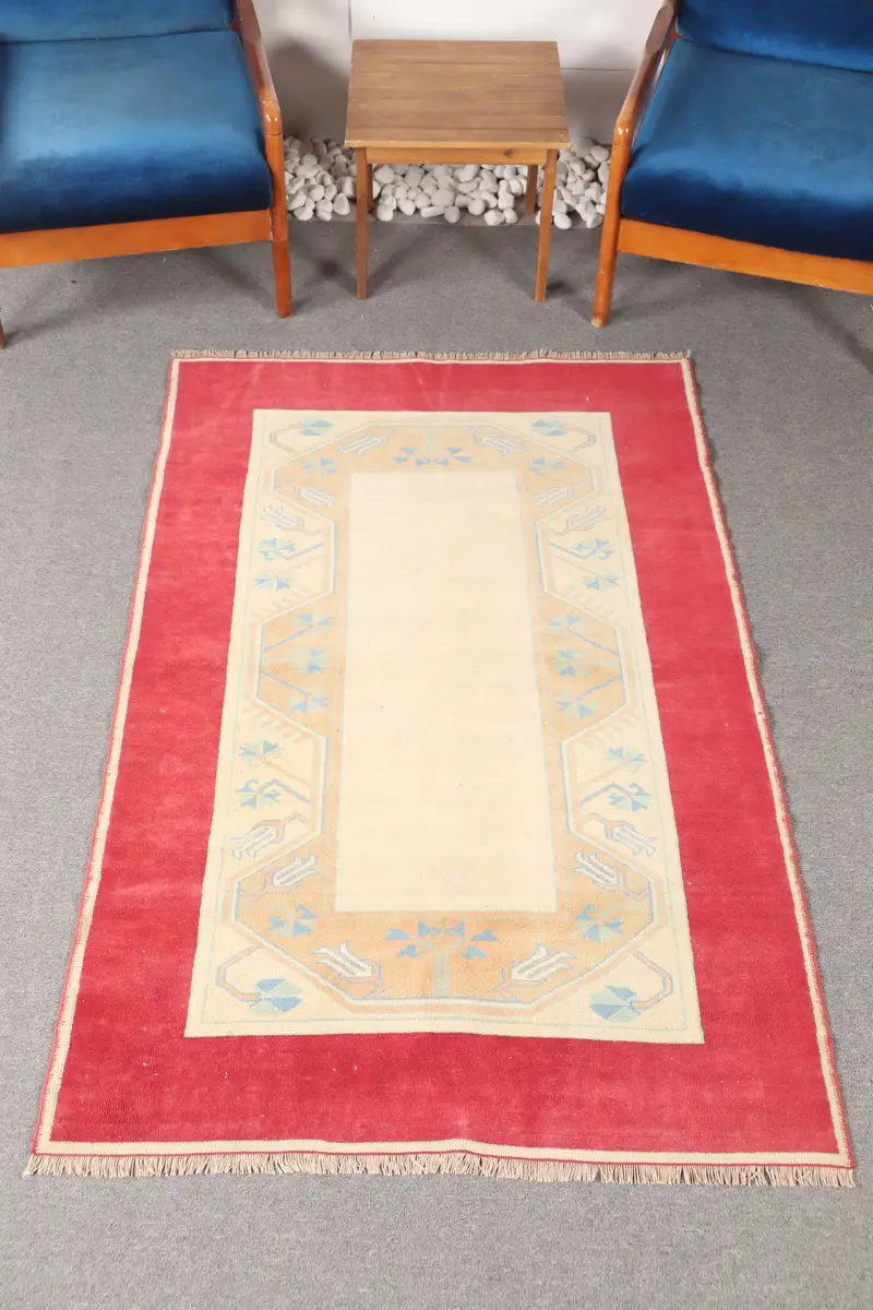 Vintage Rug, Small 3.7x5.9 ft Turkish Rug, Red Beige Geometric with floral elements Rug
