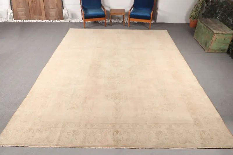 9.7x12.1 ft Vintage Turkish Rug, Oversize Rug, Rug Beige Rug