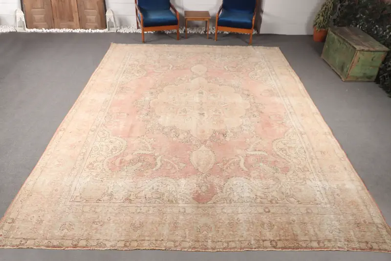 Vintage Oversize Rug 9.7x12.6 ft (295x385 cm), Rug Beige Geometric Turkish Rug