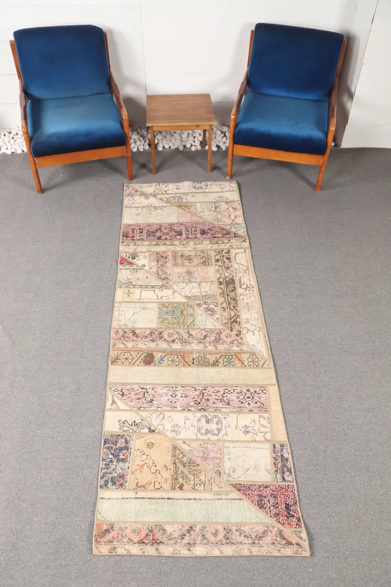 Vintage Turkish Patchwork Rug 2.6x8 ft, Brown Small Floral Rug