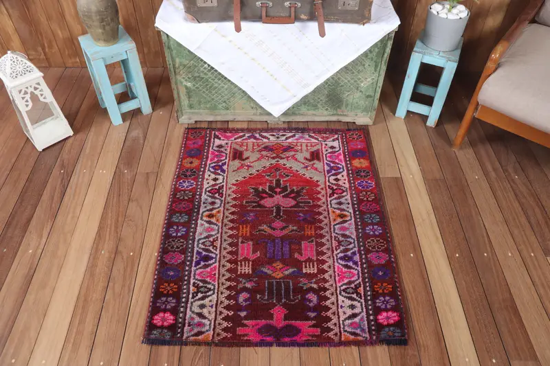 2.7x3.2 ft Herki Rug, Turkish Vintage Rug, Brown Rainbow Geometric with floral elements Rug