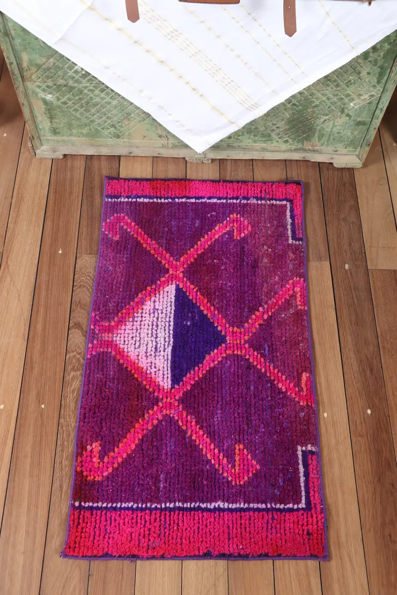Vintage 1.7x3.1 ft Rug, Small Turkish Rug, Purple Pink Geometric Rug