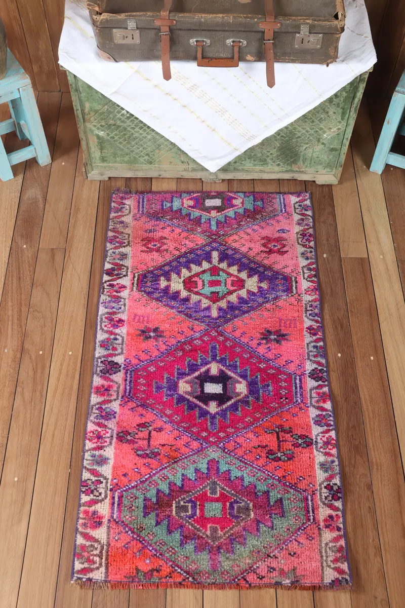 Turkish 2.3x4.3 ft Rug, Small Vintage Rug, Pink Purple Geometric Rug