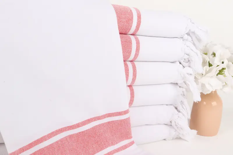 Turkish towels, known for their high-quality materials, are characterized by their 100% organic Turkish cotton composition, ensuring excellent absorbency and quick-drying properties. Their dimensions typically measure 40x71 inches or 100x180 cm, with a tolerance of up to 5%. These towels weigh 400 grams, which makes them lightweight and portable for various uses.
