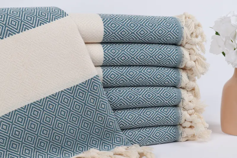 Featuring %100 Organic Turkish Cotton, these towels ensure high absorbency and quick drying characteristics. Constructed with meticulous hand-weaving, the towels provide dimensions of 40x71 inches (100x180 cm) with a weight of 420 grams, allowing for a tolerance of ±5%. Weaving tolerances range from 1 to 2.5 cm in both width and length.