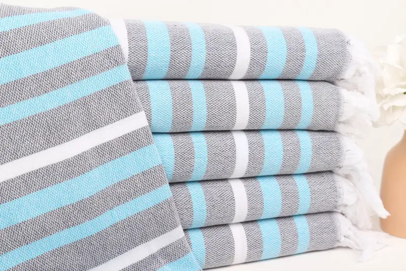 The Turkish towels are characterized by their 100% organic Turkish cotton fiber composition, ensuring excellent absorbency and quick-drying properties. Resulting in highly efficient bath and beach towels, they provide comfort and utility, with a weight of 280 grams. Hand-weaving tolerances allow for a size variance of up to 5%.