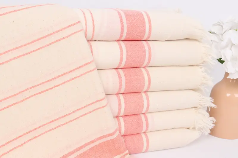 Characterized by 100% organic Turkish cotton, these towels ensure high absorbency and quick drying, resulting in an optimal texture for various applications. Measuring 67x36 inches or 90x170 cm, with a tolerance of 5%, these towels weigh 180 grams and are hand-woven to perfection. Customizations such as embroidery and monogramming are available, with the pre-shrunk status ensuring minimal size changes post-wash.
