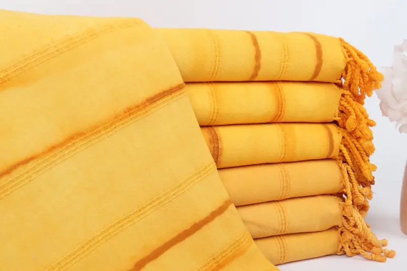 100% organic Turkish cotton is employed, ensuring premium quality characterized by its highly absorbent and quick-dry properties. These towels, weighing 440 grams, measure 63 x 38 inches or 160 x 95 centimeters with a hand-weaving tolerance of 1-2.5 cm. Dimensions and weights are subject to a 5% variance.