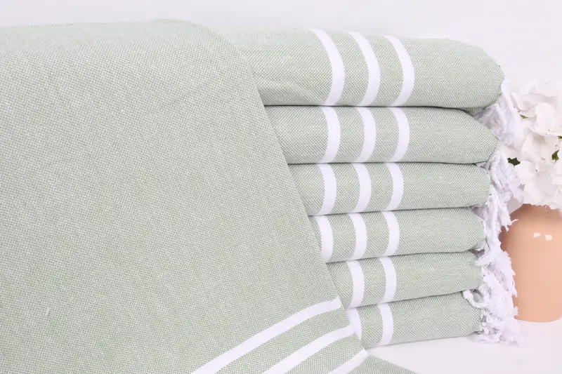 Characterized by their robust fiber composition, these small bath towels are woven from 100% organic Turkish cotton, ensuring high absorbency and quick drying. Resulting in dimensions of 40x20 inches (50x100 cm), the towels weigh 100 grams, providing a lightweight yet efficient choice for various uses. Hand-woven with tolerances of ±1-2.5 cm, these towels can be customized with embroidery or monogramming options.