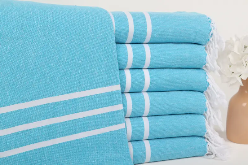 Organic Turkish cotton ensures superior absorbency, making these towels ideal for various uses. Weighing 430 grams, the towels measure 40x71 inches or 100x180 cm, with a weaving tolerance of ±2.5%. Available sizes can be customized, respecting a minimum order quantity of 500.
