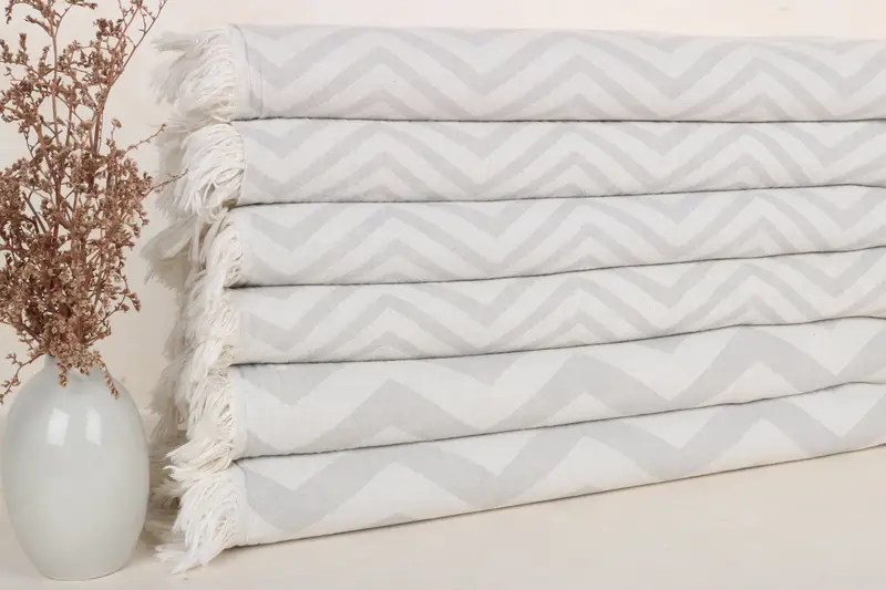 Weaving involves 100% organic Turkish cotton, ensuring high absorbency and softness. Characterized by a weight of 125 grams, dimensions of 24x40 inches or 60x100 cm, these towels exhibit a tolerance of 1-2.5 cm due to hand-weaving. Each order allows for customization through embroidery, enabling personalization with names, logos, dates, and initials.