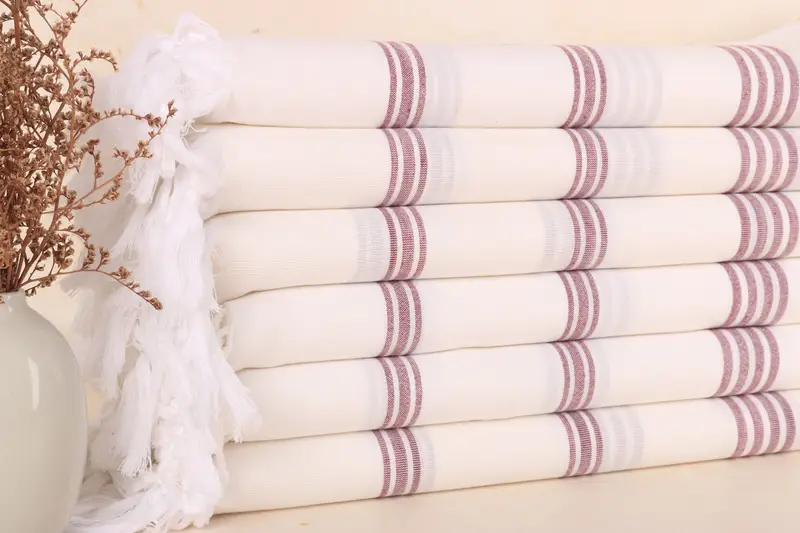 Each towel is characterized by its 100% organic Turkish cotton composition, ensuring high absorbency and durability. Weighing 240 grams, the towels measure 70x40 inches or 100x180 cm, with a hand-weaving tolerance of 1-2.5 cm. This artisanal process results in slight variations in size.
