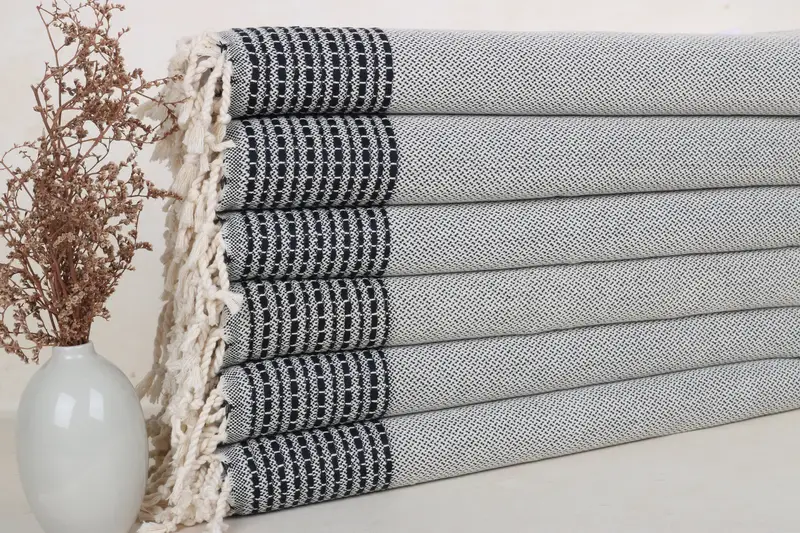 This 20x40 inch dish towel is composed of 100% organic Turkish cotton, ensuring it is highly absorbent and durable. Weighing 120 grams, it measures 20x40 inches or 50x100 cm, with slight variations due to its hand-woven nature. These towels are pre-shrunk and ideal for various uses, including kitchen, bathroom, and personal care.