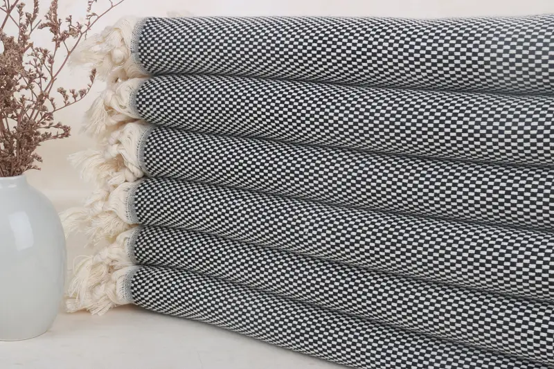 Turkish cotton towels are characterized by high absorbency and durability. Ensuring a soft, quick-dry, and lightweight texture, these towels maintain a weight of 400 grams, providing a balance of utility and comfort. The dimensions are set at 70x40 inches or 100x180 centimeters, with slight variations permissible due to their hand-woven nature.