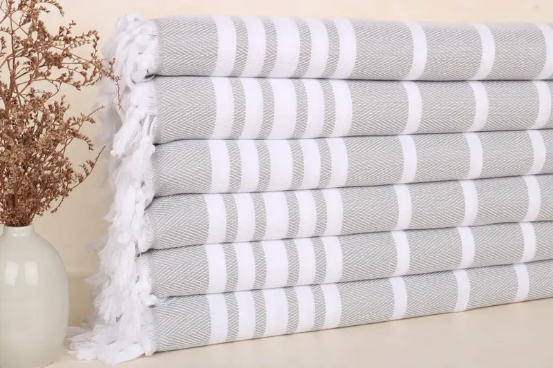 Turkish Tea Towels are characterized by their 100% organic Turkish cotton composition, ensuring a lightweight, absorbent, and sand-free product. Measuring 40x20 inches or 50x100 cm, these towels weigh approximately 110 grams, with hand-weaving tolerances allowing for slight variations. Customizable through embroidery or personalized labels, orders are packed the next day and ship within 2-4 days. Pre-washing is advised before the first use. Towels from the US ship from the US warehouse, while international orders are dispatched from Turkey.