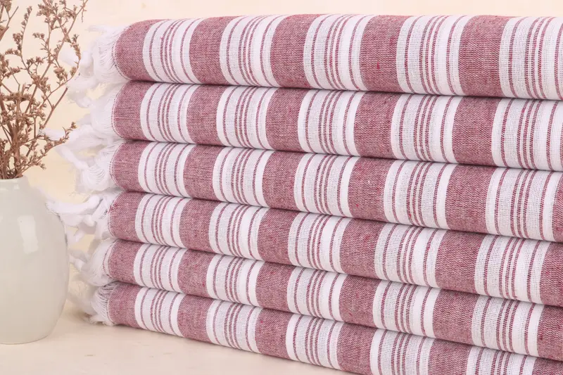 Constructed from 100% organic Turkish cotton, the striped towel ensures optimal absorbency and softness. Resulting in a lightweight and space-saving product, the towel weighs 200 grams and measures 70x40 inches or 100x180 cm, with a hand-weaving tolerance of up to 1-2.5 cm. Hand-weaving tolerances ensure precision and a personalized touch.