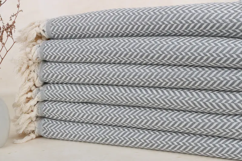The bath towels are made from 100% organic Turkish cotton, ensuring superior absorbency and durability. Each towel measures 70x40 inches or 100x180 cm with a weight of 450 grams, allowing for a balance between lightness and sufficient material. Dimensions may vary slightly due to the hand-weaving process, with a tolerance of up to 1-2.5cm.