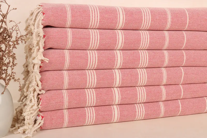 These towels, characterized by 100% organic Turkish cotton, ensure superior absorbency, lightweight properties, and quick drying times. Measuring 24x38 inches or 60x95 cm, they weigh approximately 100 grams. Due to their hand-woven nature, size variations of up to 2.5 cm are permissible.