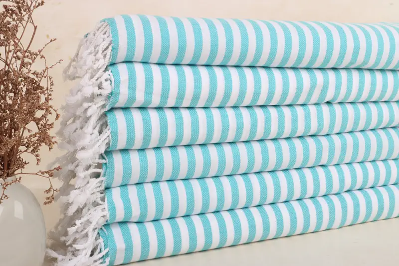 Turkish Hand Towels are woven from 100% organic Turkish cotton, ensuring softness, quick drying, and absorbency. Each towel measures 40x48 inches or 100x120 cm, weighing 180 grams. Due to their hand-woven nature, dimensions may vary by up to 1-2.5 cm.
